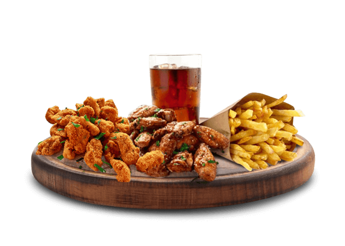 4 Wings + 4 Tenders + Frites + 1 Boisson 33cl au choix.